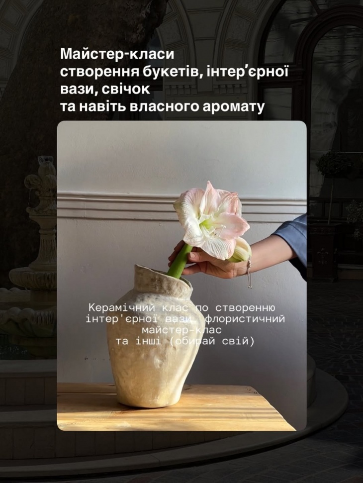 - Мастер-классы создания букетов, интерьерной вазы, свечей и даже собственного аромата.