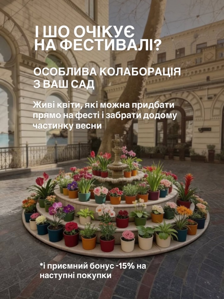 - Особая коллаборация с «ВАШ САД» Живые цветы, которые можно приобрести прямо на фестивале и забрать домой частичку весны и «УЮТ». Приятный бонус: –15% на следующие покупки