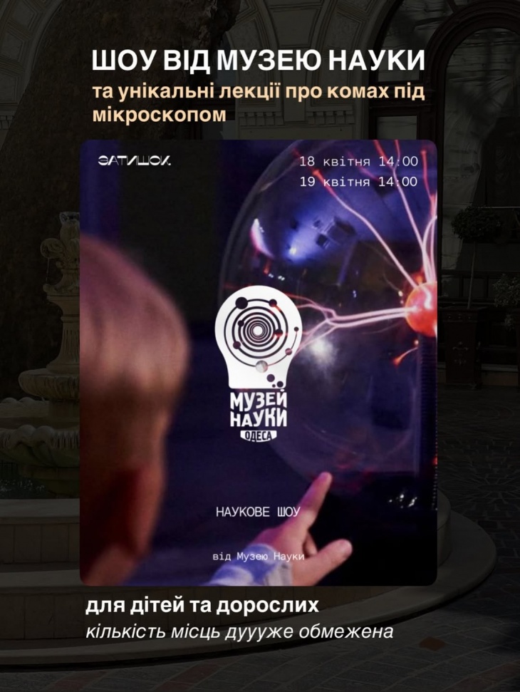 - Шоу от Музея науки (для детей и взрослых) и уникальные лекции о насекомых под микроскопом. Количество мест очень ограничено.