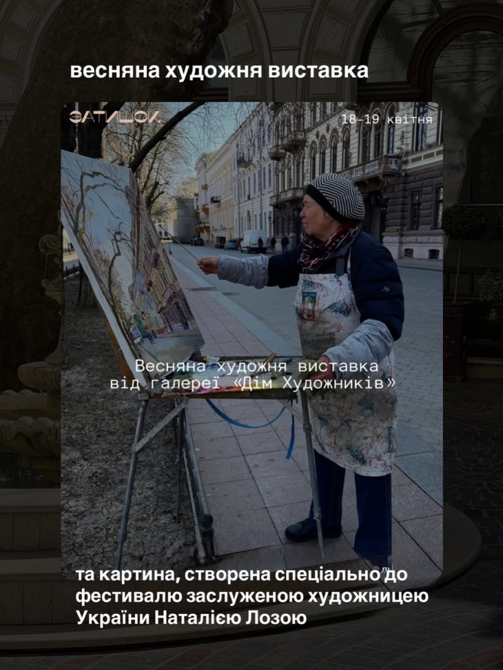 - Весенняя художественная выставка от галереи «Дом Художников» и картина создана специально к фестивалю заслуженной художницей Украины Наталией Лозой.